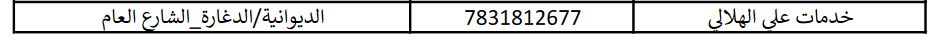 | الحلة/الحمزة الغربي | 7814004200 | سيد مناف السعبري |