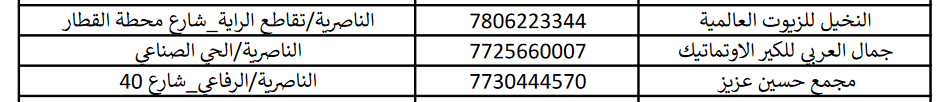 | الناصرية/تقاطع الراية_شارع محطة القطار | 7806223344 | النخيل للزيوت العالمية |