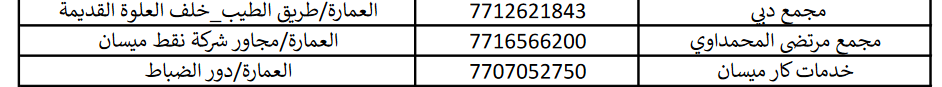 | العمارة/مجاور شركة نقط ميسان | 7716566200 | مجمع مرتضى المحمداوي |