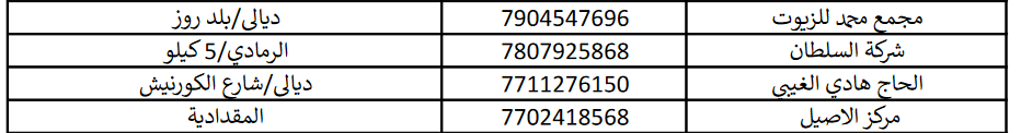 | ديالى/بلد روز | 7904547696 | مجمع محمد للزيوت |