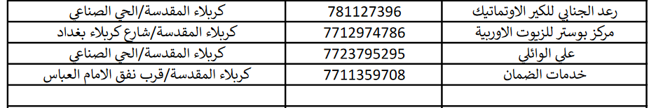 | كربلاء المقدسة/الحي الصناعي | 781127396 | رعد الجنابي للكير الاوتماتيك |